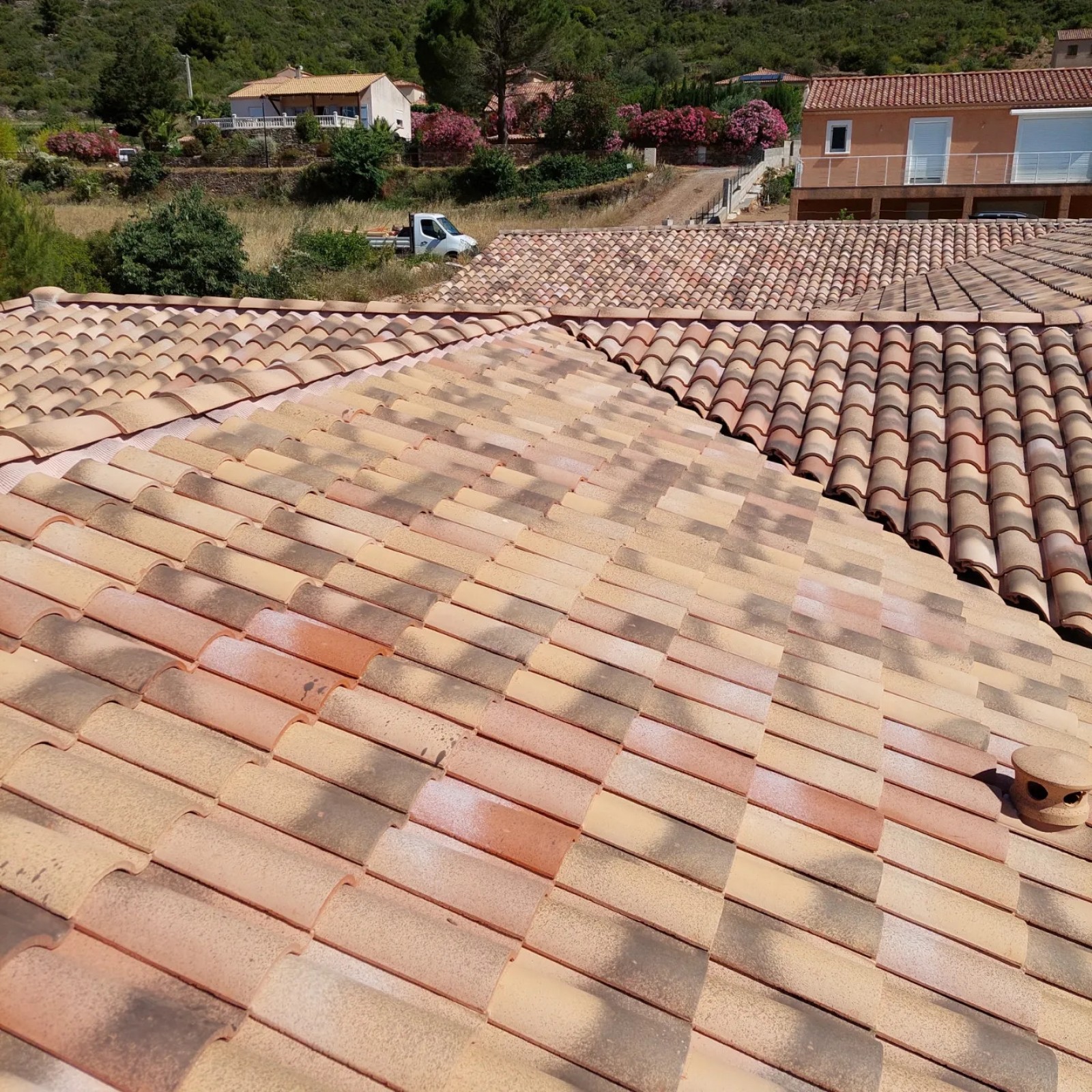 Un client m'a contacté pour faire la couverture de sa toiture à Roquebrun. Voici la réalisation d'une pose de tuile terreal Castelvieil sur une villa neuve : la pose de tuile demande un savoir-faire et doit être réalisée dans les règles de l'art. Il est préférable de refaire toute sa toiture tous les 30 ans et vérifiez son état et son étanchéité tous les 14 ans.